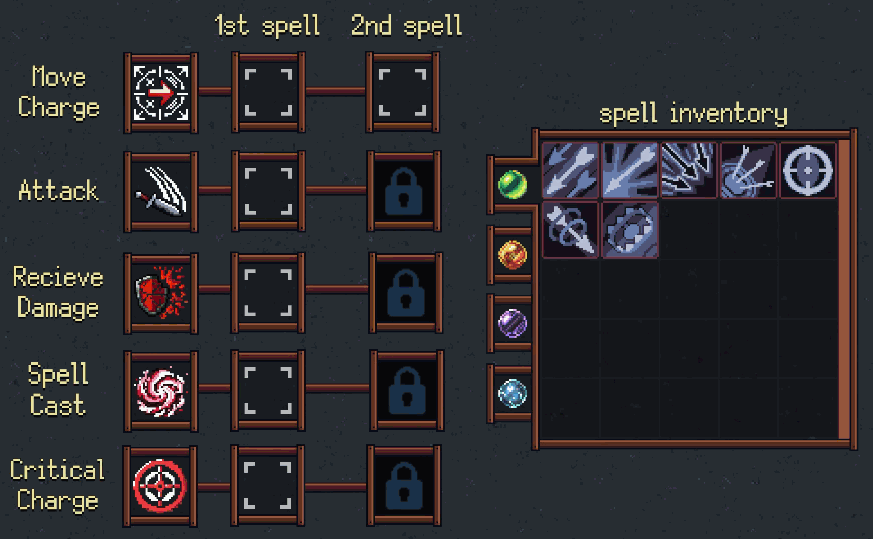 The hero can assign up to two spells for each charge mechanic, while monsters can have only one.